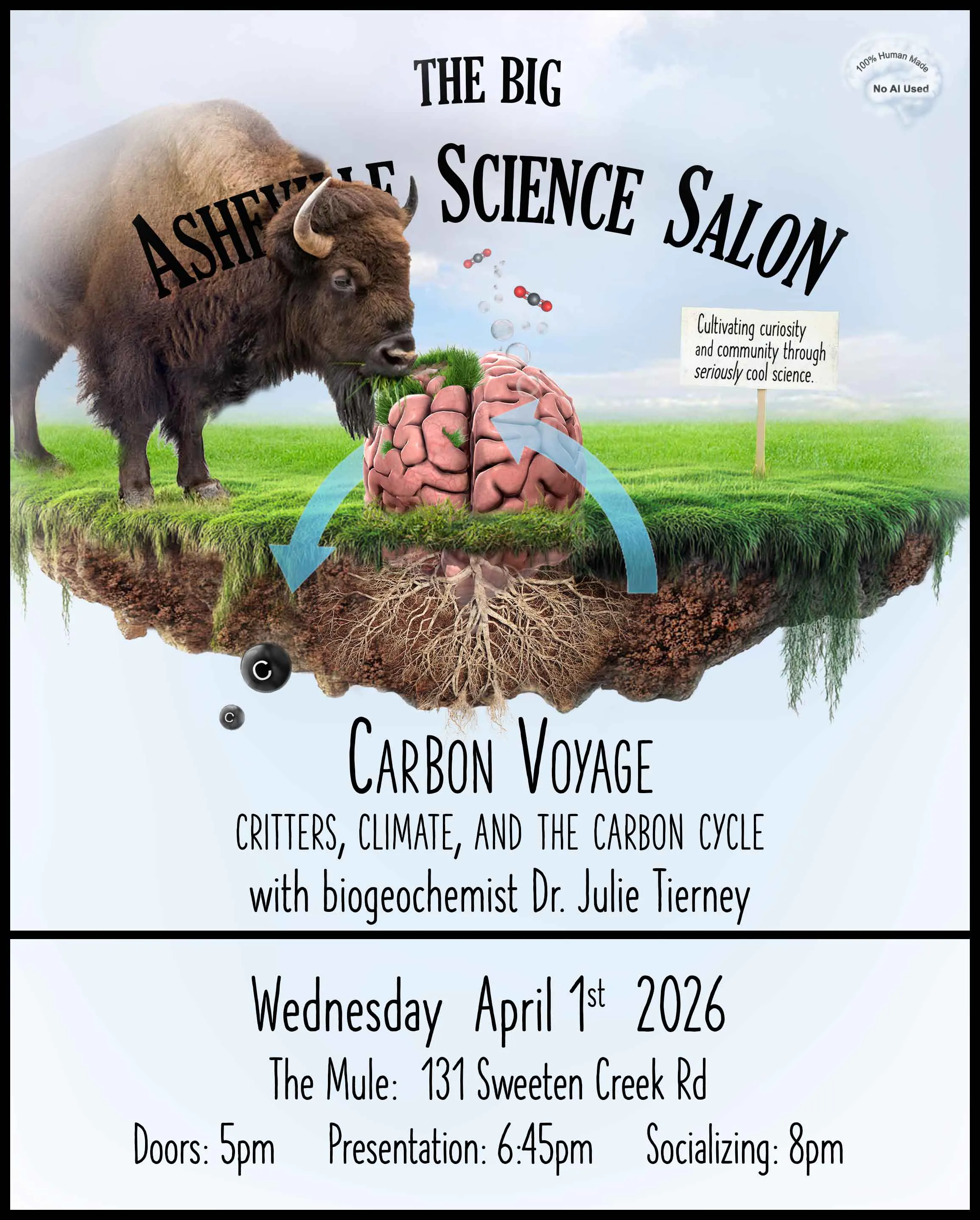 Welcome to the tremendous, amazing, Big Asheville Science Salon! APRIL: CARBON VOYAGE Catch a Ride on the Carbon Caravan with biogeochemist Dr. Julie Tierney. You’ve heard of climate change (if not, someone probably added you to this mailing list as a joke. Welcome to the comforting light of objective rationality). You’ve heard carbon plays a role. But how, … Continued