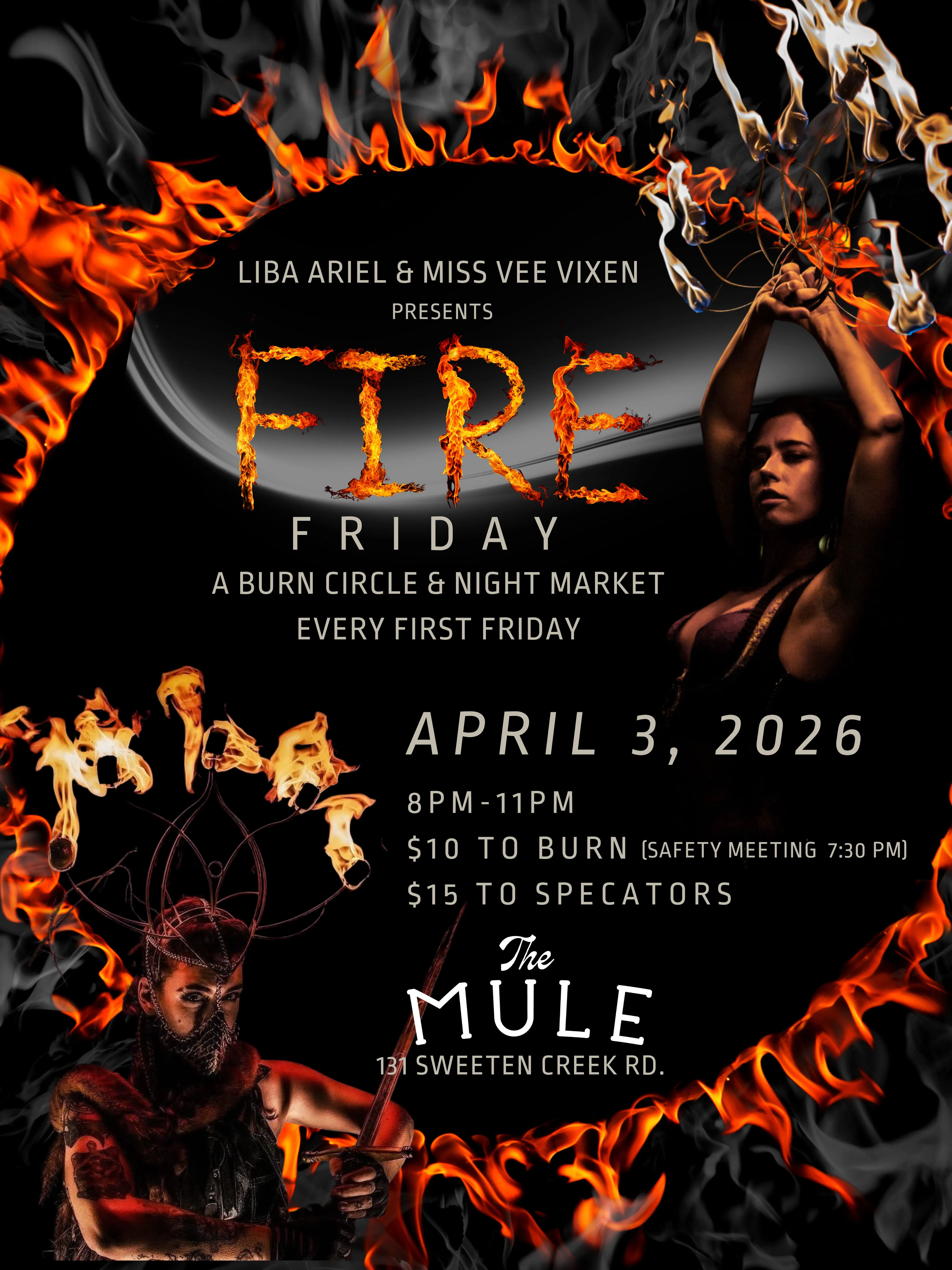 Turn Up The Heat on Fridays! Join us for Fire Friday, a monthly outdoor gathering celebrating fire arts, flow movement, and immersive performance culture at The Mule. This event creates a safe, structured, and welcoming space for experienced fire performers, beginners interested in learning, and community members who simply want to watch, dance, and enjoy the atmosphere. … Continued |