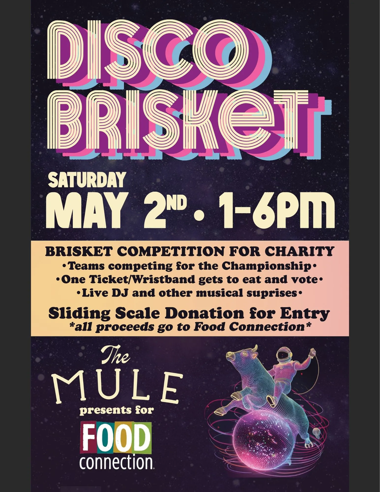 It's All In The Name... We're inviting you to boogie on down to our place for this one-of-a-kind Brisket competition. Enter on a sliding scale donation directly supporting our friends at Food Connection, and cruise the lot to taste different Brisket dishes from the teams, all while gettin' down to the tunes of a live … Continued