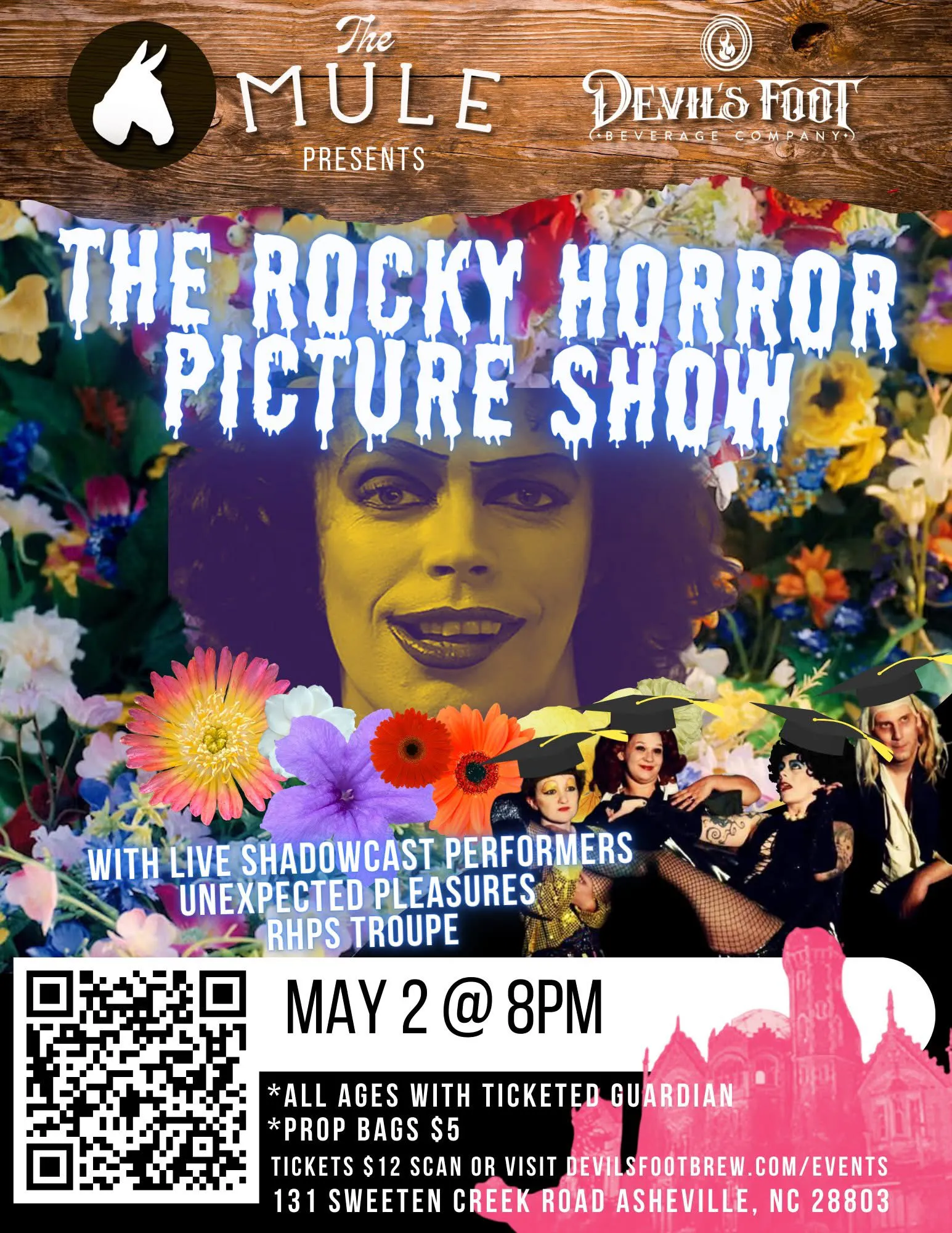 The Unexpected Pleasures RHPS Troupe Comes to The Mule! Let’s do the Time Warp again! Join us for a wild night as The Mule at Devil’s Foot Beverage Company present a screening of The Rocky Horror Picture Show with live shadowcast performance by Unexpected Pleasures RHPS Troupe! Saturday May 2, 2026 Show at 8 PM … Continued |