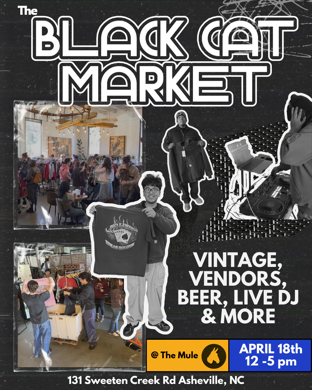 Vintage Market at The Mule Saturday afternoon with a live house DJ, drink specials and loads of local vintage vendors? Yes please. Throwin' down from 12-5p. Free to Attend. Giveaways Sprinkled Throughout! *This market is scheduled to take place outdoors, so plan to come soak up that Spring sun with us!